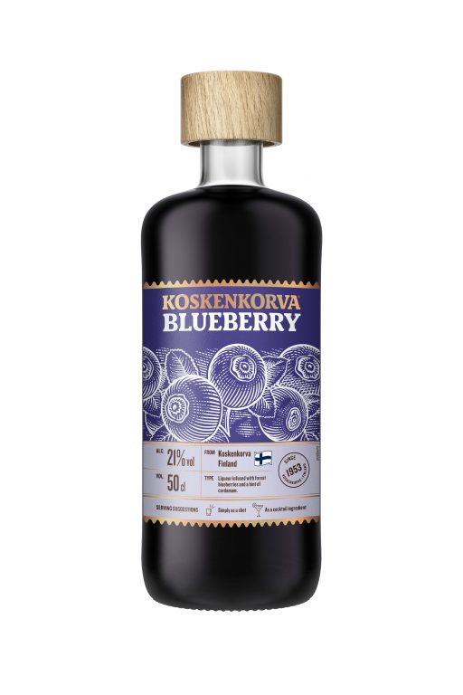 Koskenkorva Blueberry i(Blaubeere) ist ein köstlicher Heidelbeerlikör aus echten finnischen Waldheidelbeeren und einem Hauch von süßem Kardamom-Extrakt. Er ist vollmundig und hat einen süßen, aber natürlichen Geschmack.