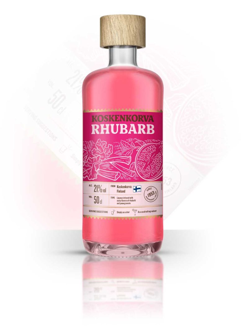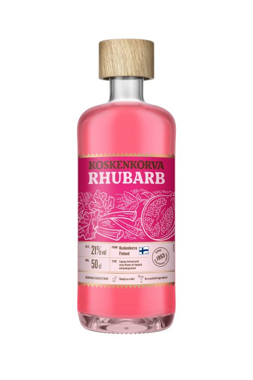 Koskenkorva Rhubarb (Rhabarber) ist ein frischer und spritziger Rhabarberlikör mit Untertönen von Granatapfel. Koskenkorva Rhubarb ist ein saftiger und vollmundiger Fruchtlikör, der mit natürlichen Rhabarber-und Granatapfelaromen hergestellt wird.